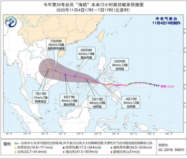 央视新闻:中央气象台下午6点发布台风蓝色预警11月4日下午5点,今年第25号台风“海鸥”的中心位于北纬10.9度、东经1度的菲律宾苏禄海北部。第4天,气温21.3度,中心附近最大风力为12级(每秒35米),中心附近最小气压为970百帕,7级风球半径为200至280公里,10级风球半径为100至120公里,12级风球半径为40公里。 “海鸥”预计将以每小时20至25公里的速度向西北偏西方向移动,并于5日上午进入南海东南部海面。预计将再次增强,达到最强台风级别(每秒42-48米,14-15级),6日夜间在越南中部沿海登陆(每秒35-42米,12-1级)4、台风级或强台风级)然后逐渐减弱。强风预报:4日20:00至5日20:00,晚上8:00起,台湾海峡、台湾以东海域、巴士海峡、南海大部、东沙群岛、南沙群岛、中沙群岛、西沙群岛、黄岩岛、北部地区将刮6~8级大风。米。 4 日至晚上 8:00米。 5号。墨西哥湾沿岸将出现9至10级阵风。其中,南海东南部、南沙群岛北部预计将有9~10级、阵风11~12级大风。 “海鸥”中心附近海域吹有11~13级风、阵风13~15级。防务指南:E政府及有关部委、机构要按照规定开展防台风和应急处置工作与他们的责任共舞。有关海域的水面活动和过往船舶必须返港避风,港口设施需要加固,防止船舶抛锚、搁浅、碰撞。停止大型户外聚会和危险的户外工作,例如高空作业。加固或拆除容易被风吹走的结构。人们不应该单独外出。应将其存放在安全的地方并尽可能防风。确保老人和儿童留在家中最安全的区域,及时将人员转移至危险建筑物。一旦台风中心过去,风力就会减弱或在一段时间内保持静止。可能会突然刮起强风,请继续避难到安全的地方。相关地区要做好防范措施,防止暴雨引发山洪、地质灾害。