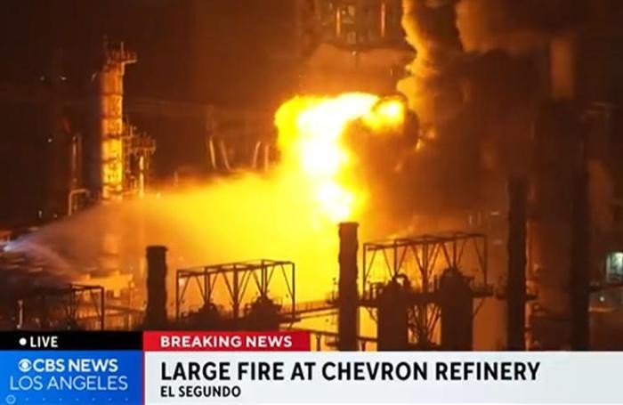 突然发生!石油炼油厂在加利福尼亚,美国爆炸